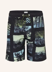 Elastyczny pas z tunelem z troczkiem. Dla chłopców. Wzór na całej powierzchni. Kieszeń tylna z zapięciem na rzep. Boczne kieszenie wpuszczane.