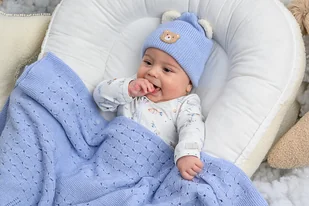 Czapka dla dziecka na zimę MISSI z uszkami misia niebieski