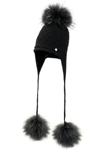 Czapka dla dziewczynki na zimę CARMINIA z trzema pomponami czarny