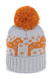 Urocza czapka dziecięca.Ozdobiona motywem koników i pomponem.Bardzo ciepła - od wewnątrz ocieplona sztucznym futrem.Idealny wybór na zimę.