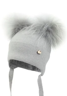 Czapka niemowlęca na zimę KIERAN z dwoma pomponami szary