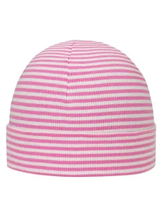 Czapka w kolorze różowym - przyjemna w dotyku i delikatna dla skóry - właściwości termoizolacyjne - wzór: paski