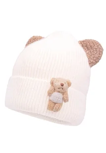 Dziecięca czapka na zimę ENES z uszkami misia ekri