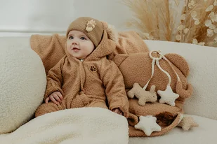 Dziecięca czapka na zimę ENES z uszkami misia karmel