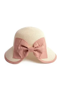 Uroczy kapelusz dla dziewczynki typu rondelek z ozdobną kokardą. Wykonany z naturalnych materiałów. Lekki i przewiewny na lato. Sprawdzi się podczas gorących, letnich dni. Idealny dla małych fanek dziewczęcych dodatków. Pasuje na plażę i na wycieczki, do zwiewnych, letnich sukienek.