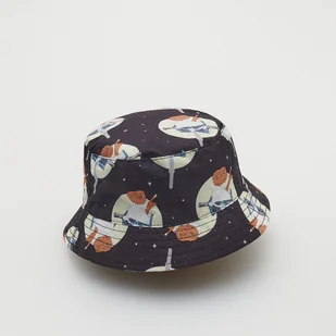 Kapelusz typu bucket hat, wykonany ze wzorzystej tkaniny z bawełną.
