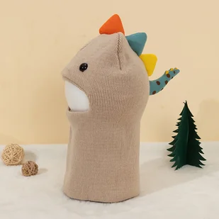 TEMU 1 szt. Czapka dziergana 'Dinozaur' z szalikiem - Elastyczna, lekka, ciepła czapka zimowa, dla dzieci w wieku 6-5 lat, wielokolorowy wzór z