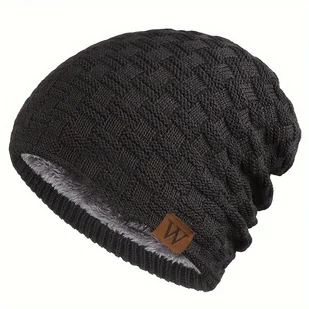 TEMU Chłopięca Czapka Zimowa z Polarową Podszewką - Termiczna, Elastyczne Dopasowanie, 100% Akryl, Logo Literowe, Lekka i Ciepła na Jesień & Zimę,