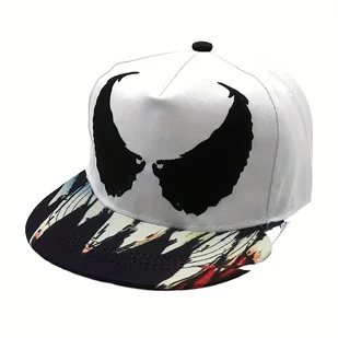 TEMU Czapka baseballowa z haftem Venom - czarno-biała , lekki poliestr, regulowana snapback do codziennego noszenia, czapka w stylu hip-hopu,
