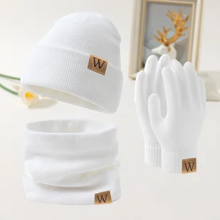 TEMU Modny zestaw dla nastolatków: czapka z dzianiny z logo "W", szal i rękawiczki, trzyczęściowy zestaw, zimowy, tani, wiatroodporny i odporny na
