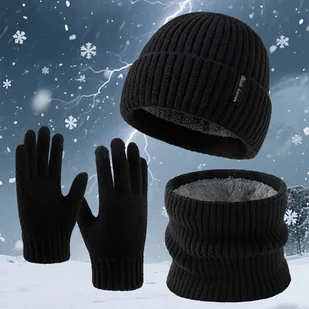 TEMU Trzyczęściowy zestaw ciepłych dzierganych na jesień i zimę, idealny dla nastolatków. Wyposażony w polar dla większego ciepła. Ten unisexowy