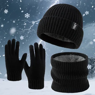 TEMU Trzyczęściowy Jesienno-Zimowy Zestaw dla Nastolatków: Gruba, Ciepła Czapka Dziewiarska, Unisexowy Mieszany Zestaw, Casualowa Czapka na Zewnątrz,