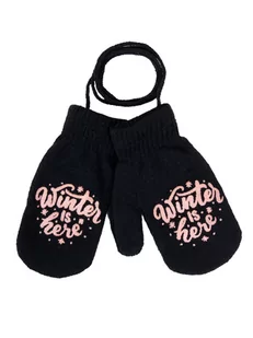 Rękawiczki Dziecięce Jednopalczaste Ze Sznurkiem Czarne Z Napisem 10 Cm