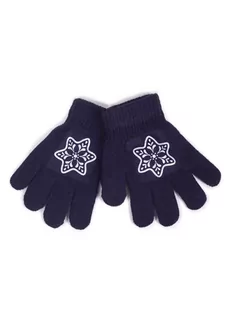 Rękawiczki Dziewczęce Pięciopalczaste Z Odblaskiem Granatowe Ze Śnieżynką 18 Cm