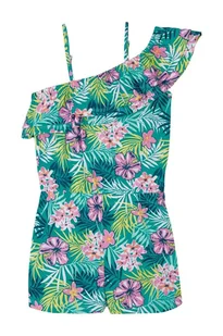 Kombinezon one-shoulder z czystej bawełny organicznej: Letni kombinezon dziewczęcy w kwiatowy wzór. Atrakcyjny kombinezon dziewczęcy w kwiatowy deseń. Regulowane ramiączka. W dekolcie falbana. W talii gumka.