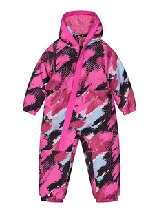 Kombinezon zimowy w kolorze różowo-czarnym - właściwości termoizolacyjne - częściowo zgrzewane szwy - kaptur: tak - kołnierz: stójka - zapięcie: suwak - talia: wewnętrzny ściągacz tunelowy - zakończenie rękawów: