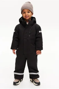 Watowany kombinezon z oddychającego wiatro- i wodoszczelnego materiału o współczynniku wodoodporności 10 000 mm. Uszczelniane szwy. Kombinezon ma funkcję powiększenia rozmiaru poprzez rozprucie wewnętrznych kolorowych szwów, co zapewni wygodne dopasowanie w miarę jak dziecko rośnie. Stójka, odpinany watowany kaptur. Zapięcie na suwak z osłoną przed otarciem i listwą.