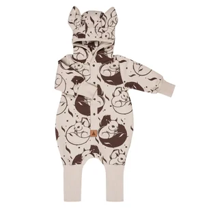 Jesienny Kombinezon Uszaty Wiewiórka na Beżu to najpiękniejsza rzecz, jakiej potrzebuje Twoje dziecko, nawet jeśli jeszcze tego nie wie. Mięciutkie, wykonane z najlepszej jakości dzianin miększych nawet od wiewiórkowej kity, której miękkość jest przecież znana wszem i wobec wszystkim obywatelom lasu, jak i obywatelom innych krain geograficznych też. Ciepły, przyjemny w dotyku materiał opatula i chroni przed srogością jesiennego dnia. W kapturze można gromadzić orzechy. Do tego specjalnie skonstruowany design, który sprawia, że kombinezon rośnie wraz z dzieckiem, gdyż ściągacze i mankieciki można odwijać w miarę rośnięcia pociechy.