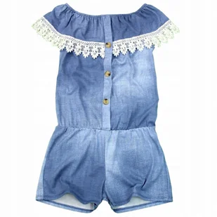 Spodnium, Kombinezon, Hiszpanka w jeansowym odcieniu niebieskiego wokół ramion naszyta falbanka, zdobiona kremową, koronkową aplikacją w pasie delikatna gumk...