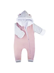 Wyprodukowano w Polsce Pajac ocieplany wykonany z zewnątrz z dzianiny dresowej w kolorze pudrowego różu i melanżu. Podszyty został białym futerkiem, co sprawia, że ubranko idealnie nadaje się na chłodne dni. Całość zdobi kaptur z uszkami. Ubranko posiada zawijane rękawy, aby na dworze ochronić rączki dziecka przed zimnem. Pajac zapinany jest na wygodny zamek, ułatwi to ubieranie.