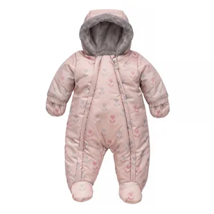 Różowy kombinezon Winter 2022 ozdobiony kwiatuszkami. Wierzchnia warstwa kombinezonu to wysokiej jakości 100% poliester, odporny na wiatr i zmoczenie. Podszewka to miłe w dotyku szare, sztuczne futerko imitujące futro lamy, które zapewni maluszkowi przyjemne uczucie miękkości. Całości dopełnia świetnie izolujące wypełnienie, które sprawia, że dziecku będzie ciepło nawet w czasie bardzo mroźnych spacerów. Rękawy podszyliśmy od wewnątrz śliskim materiałem.