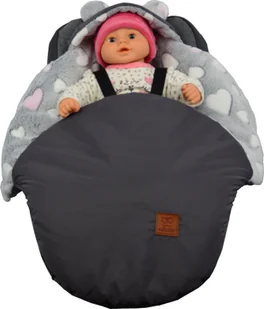 Śpiworek przystosowany jest do fotelika, gdyż posiada otwory na 3 oraz 5 punktowe pasy bezpieczeństwa.