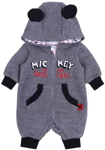 Szary, Dresowy Kombinezon-Rampers Z Kapturem Mickey
