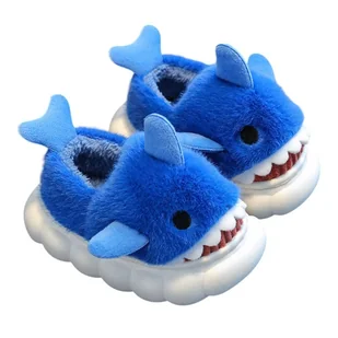 Kapcie Dziecięce Dziecięce Z Ociepleniem Wygodne Lekkie Miękkie Antypoślizgowe Domowe Przedszkolne Urocze Z Rekinem Blue Pełne Rico 32/33