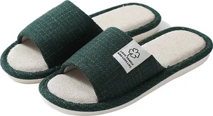 Kapcie hotelowe Kapcie damskie, kapcie męskie, kapcie gościnne antypoślizgowe kapcie z odkrytymi palcami wykonane z bawełny i lnu, zielone, 36-37