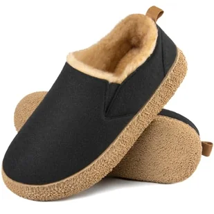 MERRIMAC Damskie kapcie ze sztucznego filcu zamknięte plecy ciepłe wygodne antypoślizgowe pianka z pamięcią kształtu buty domowe z elastycznymi wypustkami, Czarny atrament, 3/4 UK