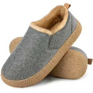 MERRIMAC Damskie kapcie ze sztucznego filcu zamknięte plecy ciepłe wygodne antypoślizgowe pianka z pamięcią kształtu buty domowe z elastycznymi wypustkami, Popielaty, 9/10 UK