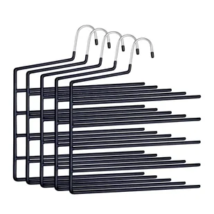 Relaxdays Spodnie z wieloma fiszbinami, zestaw 5 szt., 5 drążków, antypoślizgowe, zajmują mało miejsca, wys. x szer. 35 x 32 cm, wieszak na spodnie, czarne