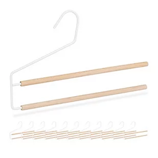 Relaxdays Wieszak na spodnie zestaw 12 szt., zajmuje mało miejsca i wiele kieszeni, na spodnie, dżinsy i szale, antypoślizgowe, drewno i metal, biały/naturalny, 12 sztuk