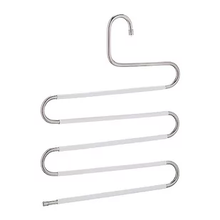 Relaxdays Wieszak na spodnie, zestaw 4 szt., kształt S, 5 drążków, antypoślizgowe, oszczędzające miejsce wielofunkcyjne pałąki, metal, srebrny/biały