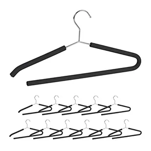Relaxdays Zestaw wieszaków na ubrania, 12 szt., antypoślizgowe obicie z pianki, wieszak na garnitur, otwarty pasek na spodnie, wieszak antypoślizgowy, czarny, 12 sztuk