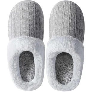 shoeslocker Kapcie dla kobiet z pianką z pamięcią kształtu puszyste kapcie domowe sypialnia antypoślizgowe ciepłe puszyste pluszowe kapcie damskie, szary, 40.5 EU