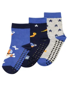 Skarpety chłopięce bawełniane długie z ABS kosmos 3-pak ❤️ Dlaczego je pokochasz: Przyjemna w dotyku, wysokogatunkowa bawełna Miękkie i przyjemne w dotyku – idealne dla delikatnej skóry dziecka Elastyczny ściągacz ABS – bezpieczne, antypoślizgowe Motyw kosmosu Chłopięca kolorystyka Praktyczny 3-pak – wygodne rozwiązanie na każdy dzień ✨ Dodaj odrobinę stylu do codziennych stylizacji! ✨ Zestaw 3 par długich skarpet chłopięcych z ABS w modnych kolorach: niebieskim, granatowym i szarym. Skarpety ozdobione są motywem kosmosu, który z pewnością spodoba się małym miłośnikom planet i rakiet. Na spodniej stronie znajduje się antypoślizgowa aplikacja w postaci kropek, która gwarantuje dobrą przyczepność do podłogi.