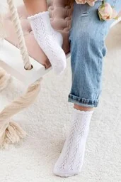 Skarpetki dziecięce Mileny z czarującym ażurowym wzorem to kwintesencja stylu i komfortu dla małych stóp. Wykonane z miękkiej, oddychającej bawełny, delikatne skarpetki zapewniają wygodę przez cały dzień. Subtelny ażur dodaje odrobiny elegancji, a elastyczny ściągacz gwarantuje idealne dopasowanie. Idealne na co dzień i na specjalne okazje! Cechy produktu: klasyczne kolory, miękka, ażurowa faktura, elastyczny ściągacz, ściągacz wykończony falbanką, Skład: