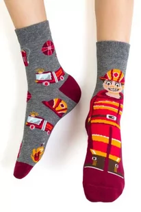 Dla wszystkich odważnych chłopców, którzy już dziś wiedzą, że w przyszłości będą gasić pożary przygotowano specjalne, strażackie skarpetki. Ta wesoła para nie do pary powstała z doskonałej bawełny i z pewnością poradzi sobie podczas niejednej trudnej akcji. Delikatna i jednocześnie wytrzymała przędza zapewnia odpowiednią przewiewność dziecięcym stópkom, a rodzicom daje gwarancję wysokiej jakości wykonania i odporności na przetarcia. Cechy produktu: strażacka grafika przewiewne wygodne Skład :