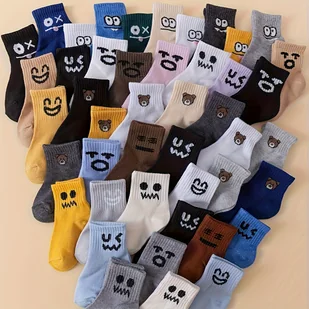 TEMU 10 Par Ciepłych Skarpetek dla Nastolatków i Młodzieży - Miękki Poliester, Urocze Kreskówkowe Twarze, na Każdą Porę Roku, Idealne na Jesień i