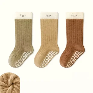 TEMU Zestaw 3 par skarpetek podłogowych dla niemowląt, zimowe termiczne skarpetki za kostkę dla dzieci, unisex skarpetki antypoślizgowe do nauki