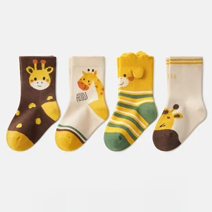 TEMU 4/8 Par Skarpetek Dziecięcych z Motywem Jelenia i Żyrafy Skarpetki do Połowy Łydki, Idealne na Każdy Sezon, Można Prać w Pralce