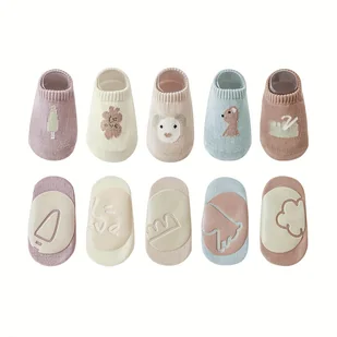 TEMU 5 szt. Antypoślizgowe skarpetki dla niemowląt z motywem zwierzątek z kreskówek, chłopięce i dziewczęce skarpetki do połowy łydki, dziecięce