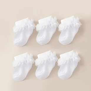 TEMU 6 Par Skarpetek dla Dziewczynki - Miękkie, Oddychające Skarpety z Koronką i Wzorem Księżniczki do Tańca, Prosty Design na Wiosnę/, Codziennego