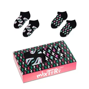 W każdej paczce mixTUR czekają 4 kolorowe skarpetki. Dwie z jednym wzorem i dwie z drugim. Jak chcesz, to możesz dobrać je klasycznie lub założyć nie do pary...
