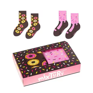 ZOOKSY kolorowe skarpetki dla dzieci w zestawie r.30-35 2 pary, skarpetki w donuty, różowe skarpetki - mixTURY DONUTOWE
