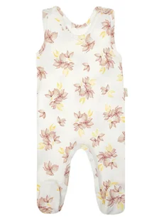 Wyprodukowano w Polsce Komfortowe śpioszki dla dziewczynki, wykonane z materiału w kolorze kremowym w kwiatowy wzór. Posiada certyfikat Oeko-Tex Standard 100...