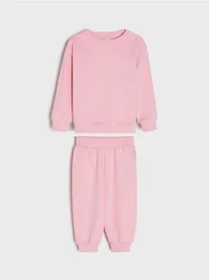 Sinsay - Komplet dzianinowy - różowy - okragły dekolt zapinany z boku na zatrzaski,zakończona ściągaczami,elastyczna guma w pasie