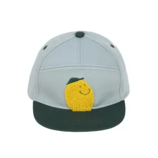 Stylowa i praktyczna czapka z daszkiem z kolekcji Little Gang niemieckiej marki LASSIG. Idealna na co dzień, do ochrony przed słońcem czy wiatrem lub po prostu – jako stylowe uzupełnienie stroju. Czapka posiada nowoczesny, prosty daszek oraz ciekawą kolorystykę: błękitny odcień kontrastuje z ciemnozielonymi detalami, takimi jak daszek czy obszycia otworów wentylacyjnych. Z przodu czapki znajduje się haftowana aplikacja 3D w kształcie żółtej cytrynki.