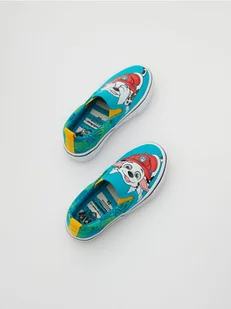 Klasyczne, wsuwane trampki wykonane z grubszego materiału z organicznej bawełny.